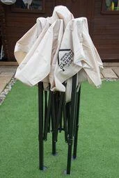 The 2mx2m frame has adjustable height settings and can be used on multiple surfaces such as sand, grass, concrete, wooden decking etc and is designed to last many years. This gazebo can be purchased with or without side panels and weighs 16kgs with no sides, 19kg with our lightweight side panels or a brilliant 21kgs with our heavyweight sides!