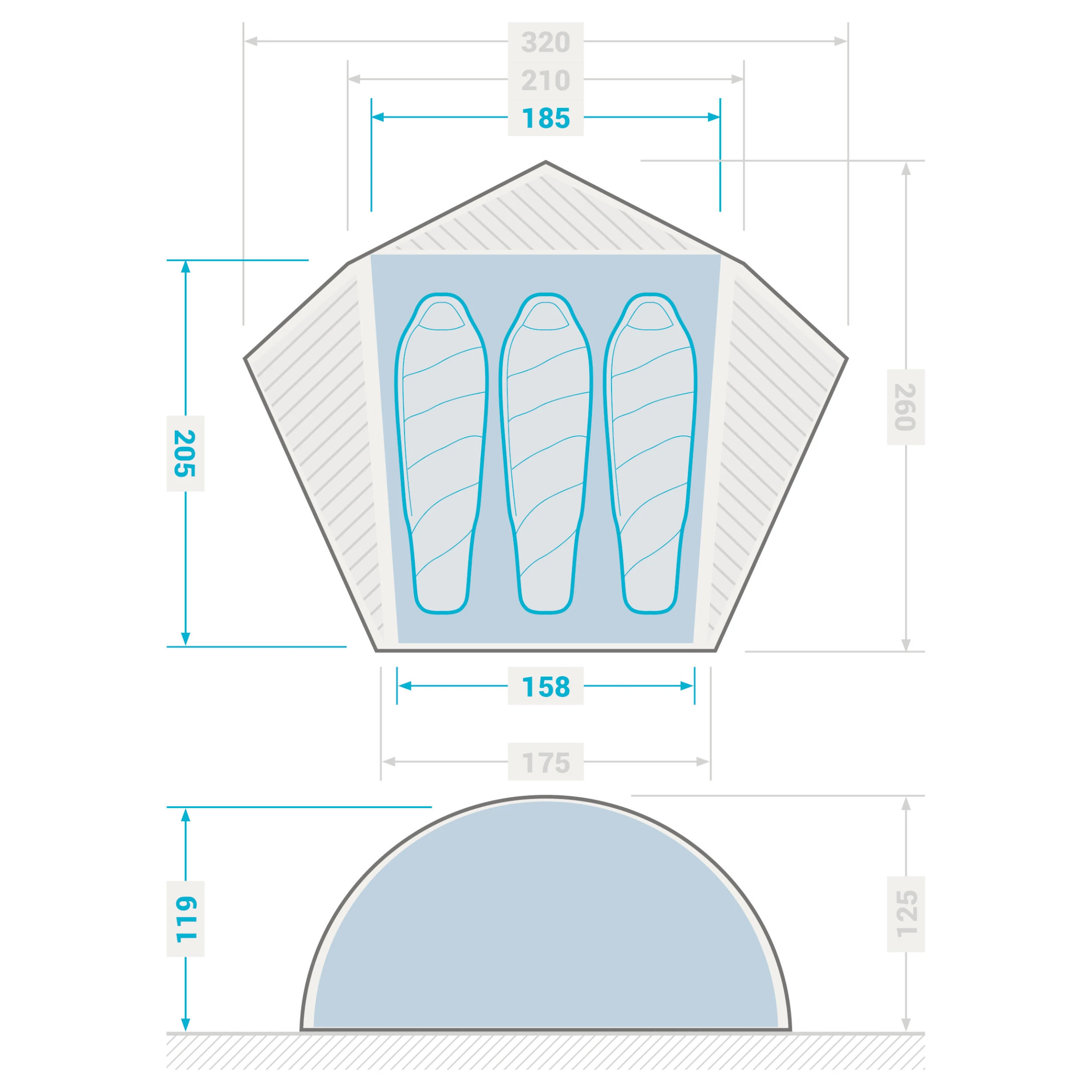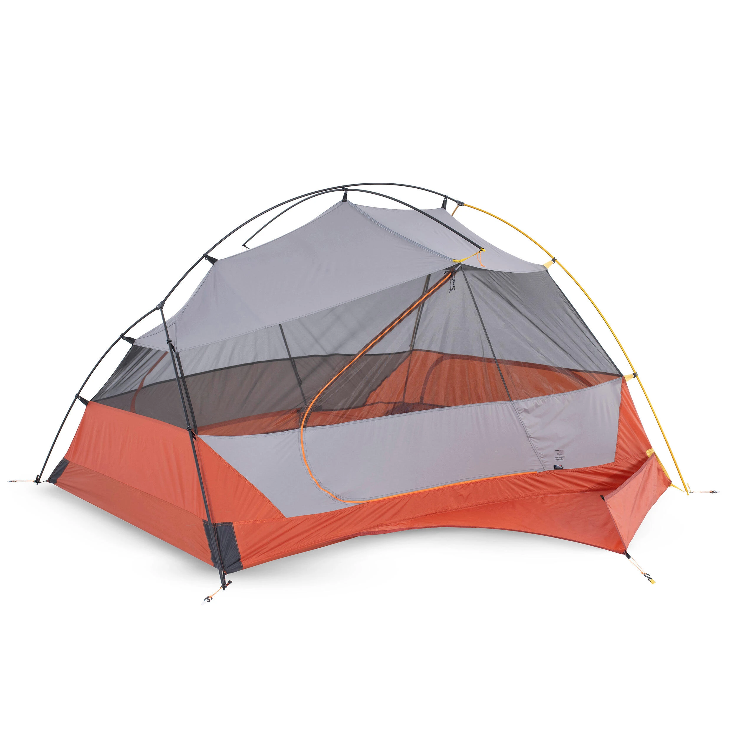 Designed and developed in the French Alps, this self-standing 3-season 3-person tent offers comfort and space and is ultra lightweight and compact.With its dome structure (double Y), the tent offers optimal and functional space: 6 pockets, 2 doors and 3 porches protected by 3 backpacks up to 50-70 L. With a separate flysheet and bedroom.