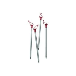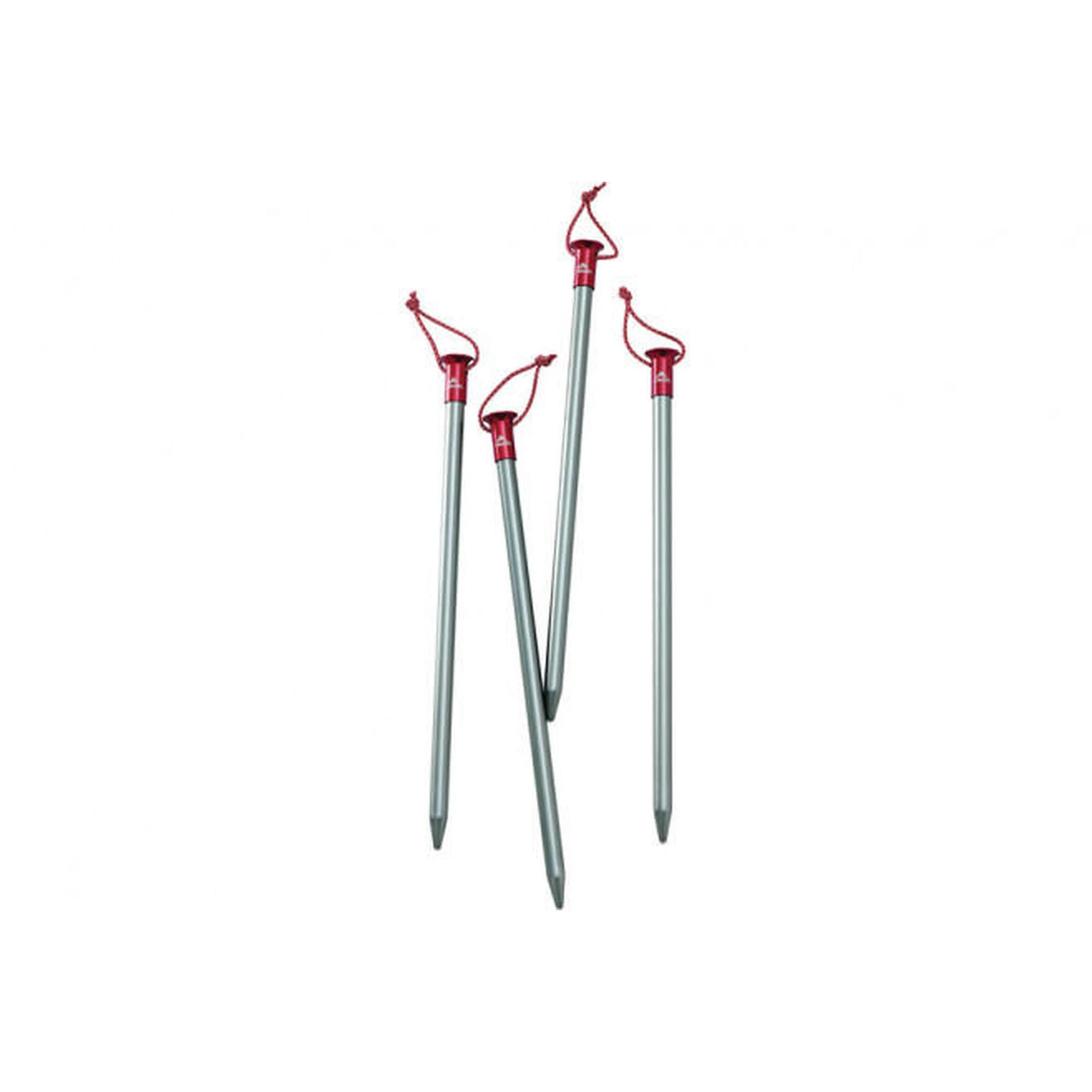 The MSR Carbon Core Stake Kit is sold as a set of four stakes. Each stake has a carbon fibre core that is wrapped in an aluminium shell to give added durability to the strength and rigidity of the carbon core.
