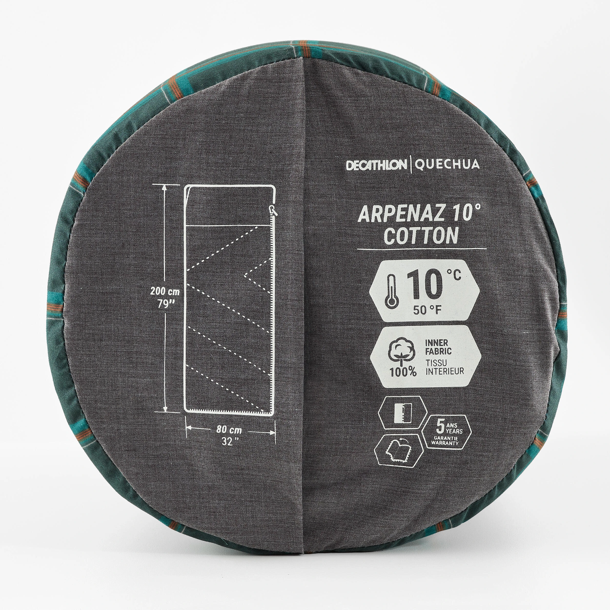 Our camping designers have developed this Arpenaz 10° cotton sleeping bag for comfortable sleep when camping in temperatures of around 10°C.A comfortable sleeping bag with an extremely pleasant cotton feel. It is two metres long and can be converted into a duvet. It comes with a five-year warranty.