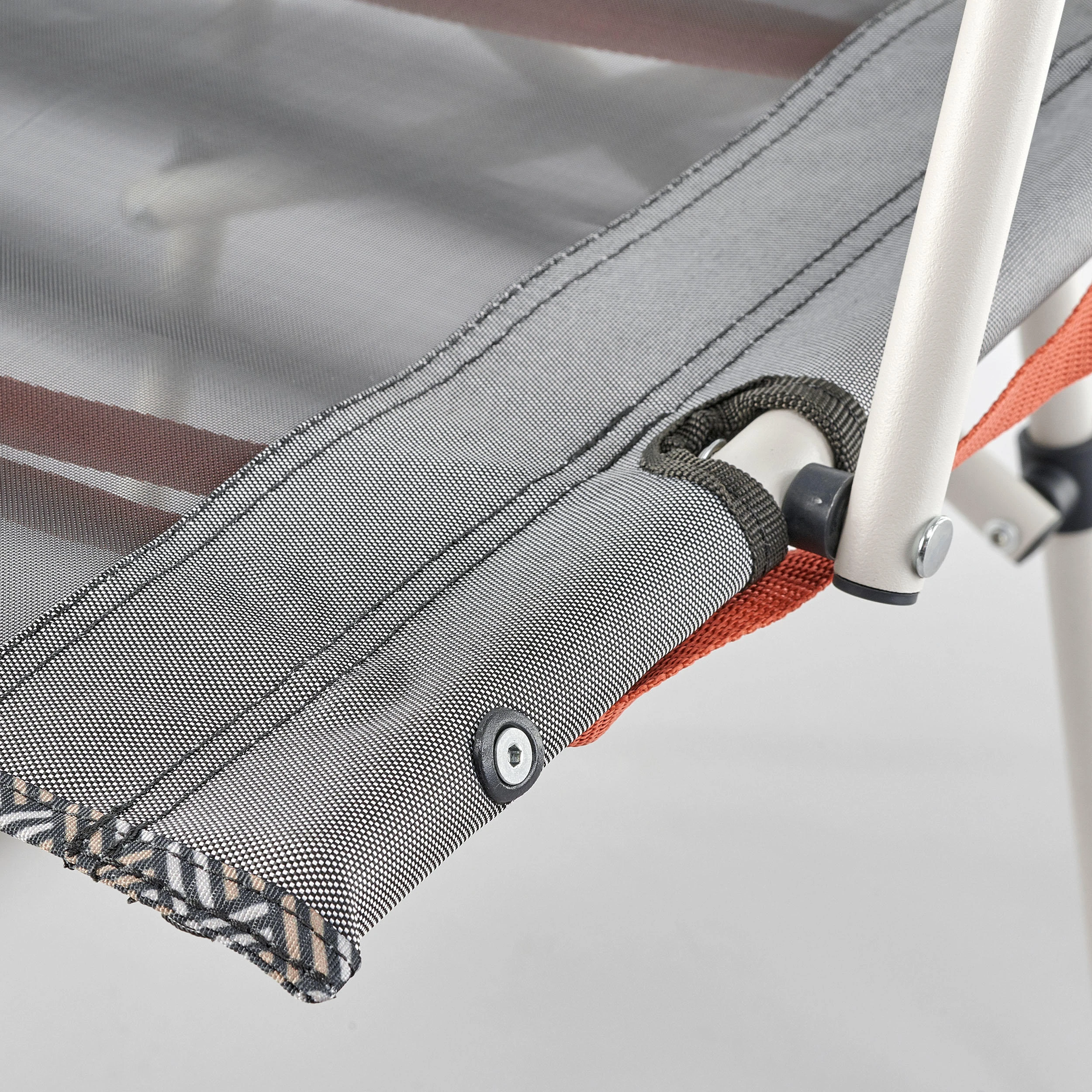 Our camping team has designed this Comfort folding chair for dining comfortably during camping trips.A top-of-the-range chair, it is extremely comfortable for dining outdoors. It has two armrests and a firm, ventilated seat and back.