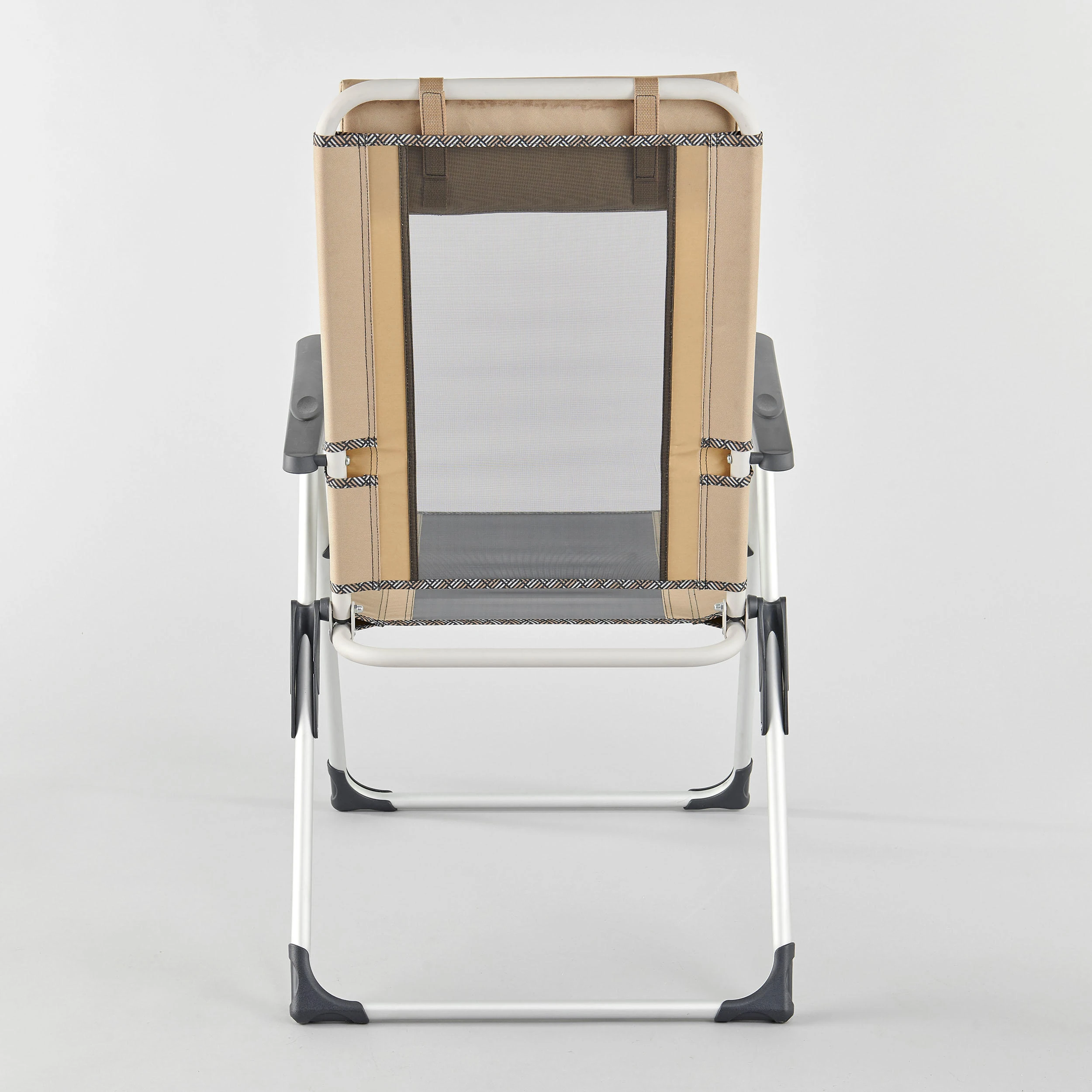 Our team of camping enthusiasts created this Comfort reclining chair. Foldable and comfortable to sit down and relax on while you’re camping.An extremely comfortable chair for relaxing on, it includes a headrest, two armrests and above all, a wide, reclining ventilated backrest with several resting positions.