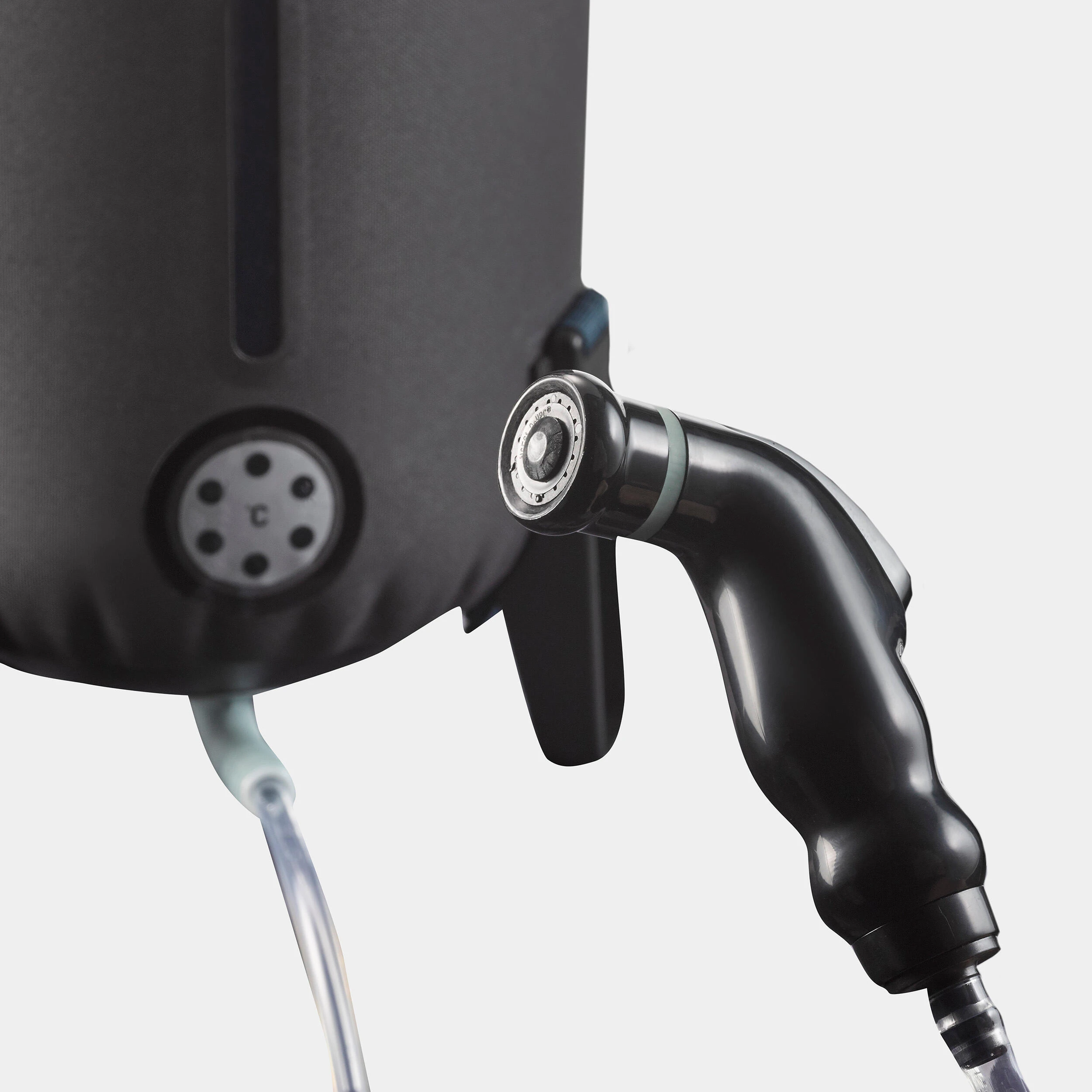 To encourage increased temperature, put the shower in the sun between :12:00 and 18:00. We advise against putting it behind a car windscreen; our tests show that the water could go beyond 70°C. Be aware that the temperature drops as soon as the sun fades. When you put the pressure on, a ringing noise from the valve will signal maximum pressure: pump again when the pressure drops in use. Be sure to push the pipe well into the connector.